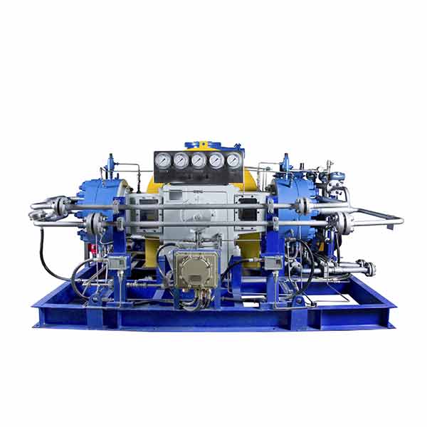 1.Good sealing performance: Diaphragm compressor is a kind of special structure positivedisplacement compressor, the gas does not need lubricationgood sealing performance, the compression medium does notcontact with any lubricant, will not produce any contaminationin the compression process, Especially suitable for highpurity (99.9999% above),rare, highly corrosive, toxic,harmful, flammable,explosive and radioactive gascompression, transportation and bottle filling. 2.Cylinder heat dissipation performance is good: Compressor cylinder heat dissipation performance is good.close to isothermal compression, can use high compressionratio, suitable for compression of high pressure gas. Diaphragm compressor technological advantage 1. Low of speed prolong the service life of wearing parts. Thenew membrane cavity curve improves the volumeefficiency.optimizes the gas valve profile, and the diaphragmadopts a special heat treatment method, greatly prolongs theservice life. 2. the use of high efficiency cooler, so that the temperature islow, high efficiency, can properly extend the life of lubricatingoil, O-ring, valve spring. Under the condition of meeting thetechnological parameters, the structure is more advancedreasonable and energy saving. 3. the cylinder head using Mosaic double O-ring seal, itssealing effectis far better than open head. 4.diaphragm rupture alarm structure advanced, reasonablereliable, diaphragm installation is non-directional, easy toreplace. 5.The parts of the whole equipment are concentrated on acommon skid which is easy to transport,install and operation.