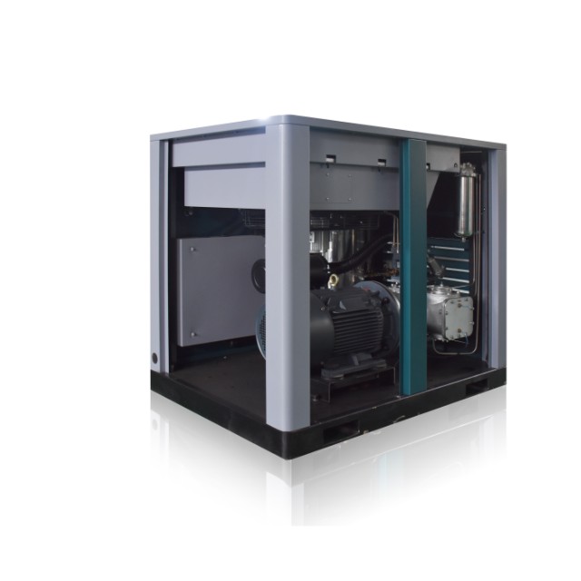 The screw air compressors have excellent energy efficiency, high reliability and easy maintenance. They are widely used in medicine, food, electronics, chemistry and other industries for requirement of high purity compressed air. The lubrication system is a single-cycle system with high performance mechanical seals separating the compression chamber from the bearings strictly. Only lubricating oil can flow within its closed region and cannot flow into the compression chamber where no pure compressed air exists after slight purification and pollution removal after treatment, we can obtain pure compressed air.