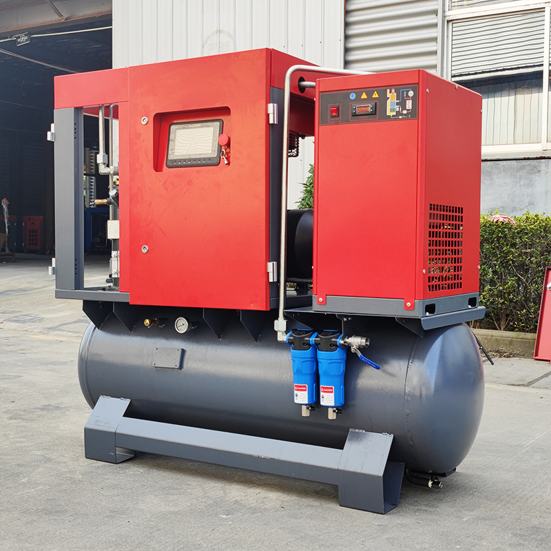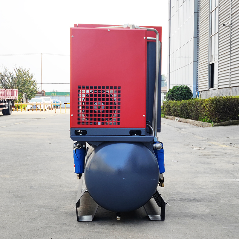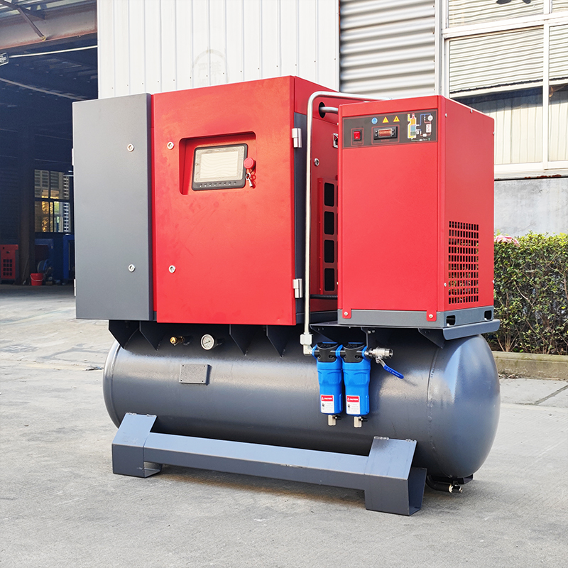 The Integgrate type screw air compressor is a one-piece integrated structure and is composed of the piston compressor, refrigeration condenser, precise filter and the storage tank. The user installs it easily and it’s simple to use with mobile portability