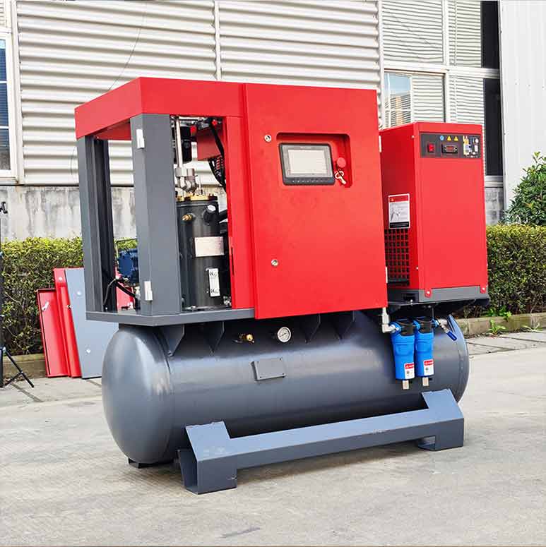 Screw air compressor is a kind of air compressor with rotary positive pressure mechanism. Screw compressors are usually used where large amounts of high pressure air are needed. When your applications require continuous air demand, screw compressors are your choice.